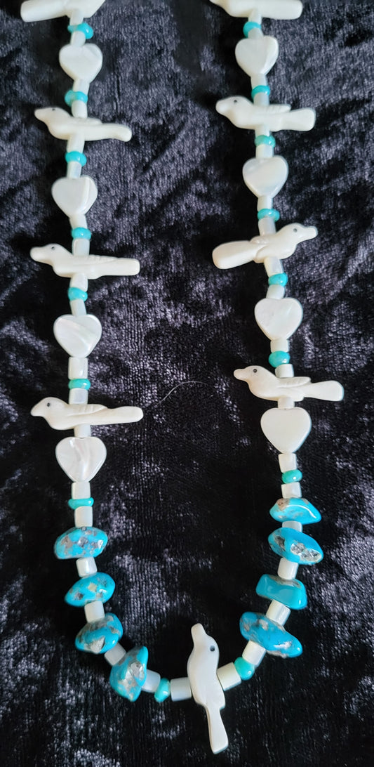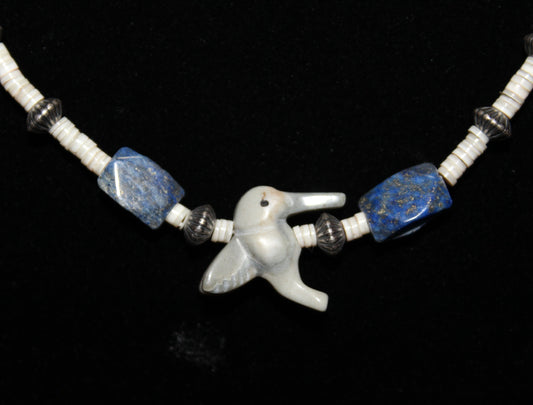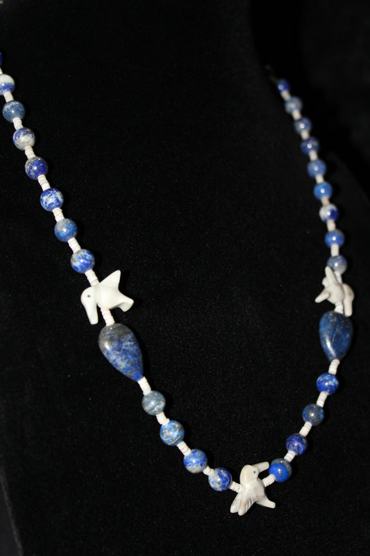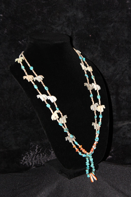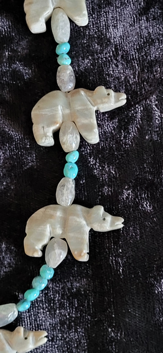 Hand Carved Pipestone & White Marble Sacred Bear Necklace
