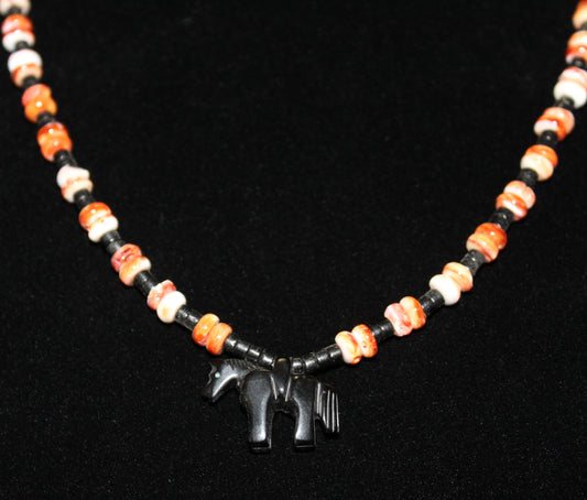 Hand Carved Orange Spiny Shell, Picasso, and White Marble Bear Necklace