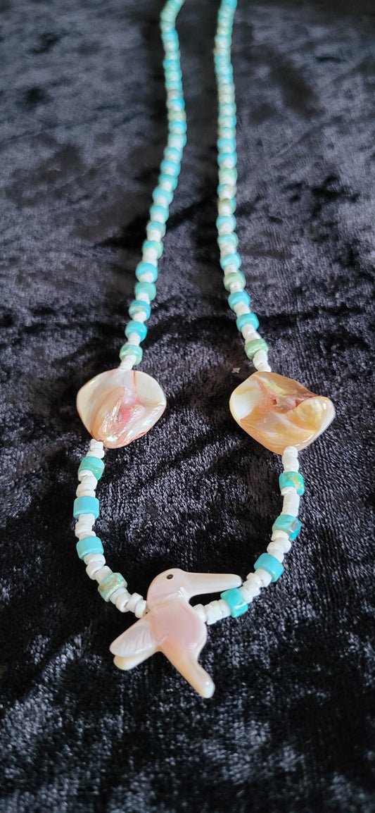 Sold outPink Shell Humming bird design