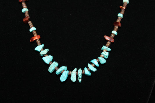 Sold outRed Tiger Eye and Turquoise Necklace